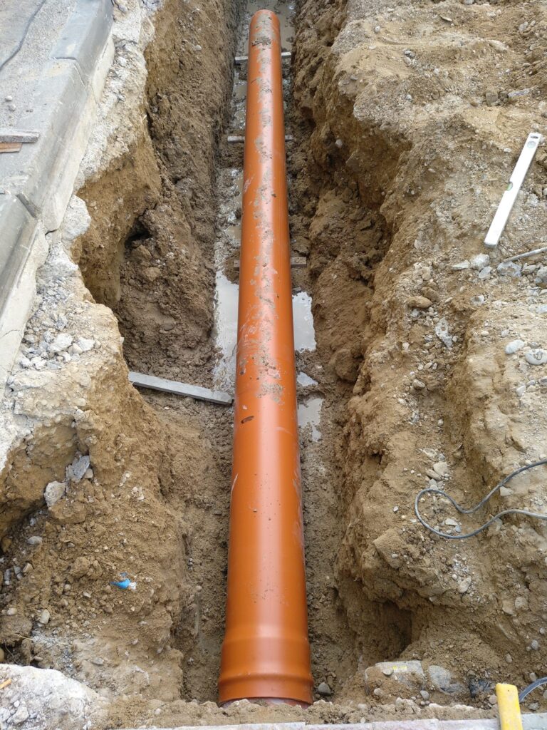 Tubería de la red general, acometidas y sumideros en PVC, color teja, compacta, de diversos diámetros; acometidas domiciliarias; sumideros y pozos de registro.